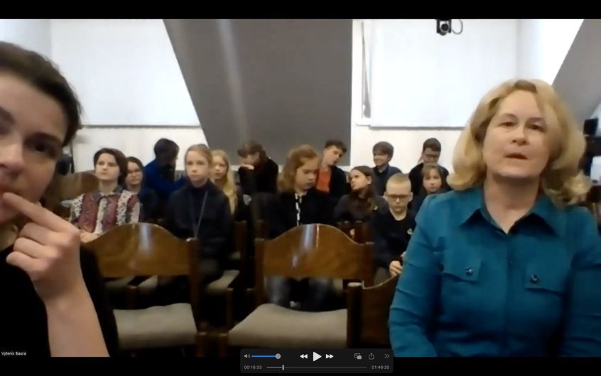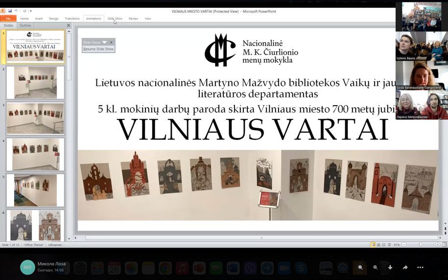 Міжнародний соціокультурний захід «Вільнюс – Полтава: вектор єднання»! – спільний проєкт кафедри культурології та Полтавської обласної бібліотеки для дітей імені Панаса Мирного. Захід відбувався у змішаному форматі. За допомогою платформи ZOOM на зв’язку були працівники відділу літератури для дітей та юнацтва Литовської Національної бібліотеки імені Мартінаса Маждиваса і завідувачка пані Году Баранаускайте-Данговене, а також вихованців знаменитої школи мистецтв Чюрльоніса, які прийшли на захід разом зі своїми вчителями. Українську сторону представляли студенти й викладачі кафедри культурології Полтавського національного педагогічного університету імені В. Г. Короленка, учні 8-го класу загальноосвітньої школи № 38 м. Полтави та їхні вчителі, а також працівники Полтавської обласної бібліотеки для дітей імені Панаса Мирного.