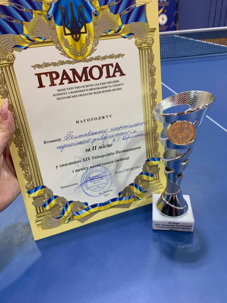 Уклінно дякуємо Збройним силам України за можливість брати участь в ХІХ Універсіаді Полтавщини, а команді виносимо подяку за видовищні моменти гри та позитивні емоції. Бажаємо всім спортсменам з настільного тенісу не зупинятися на досягнутому, а наполегливо тренуватися та сміливо йти до нових перемог, щоб на високому рівні представляти Полтавський педагогічний університет!